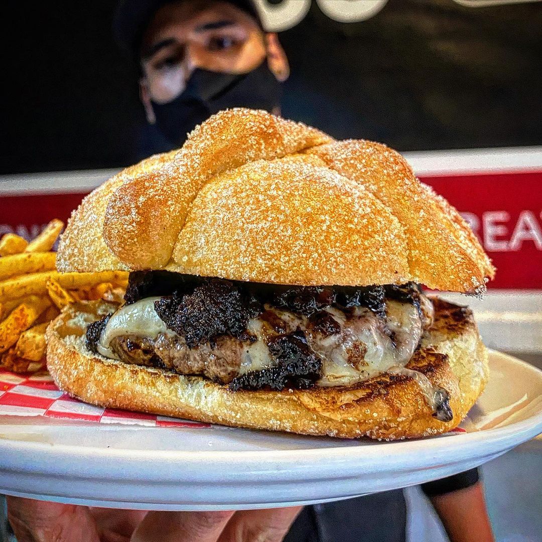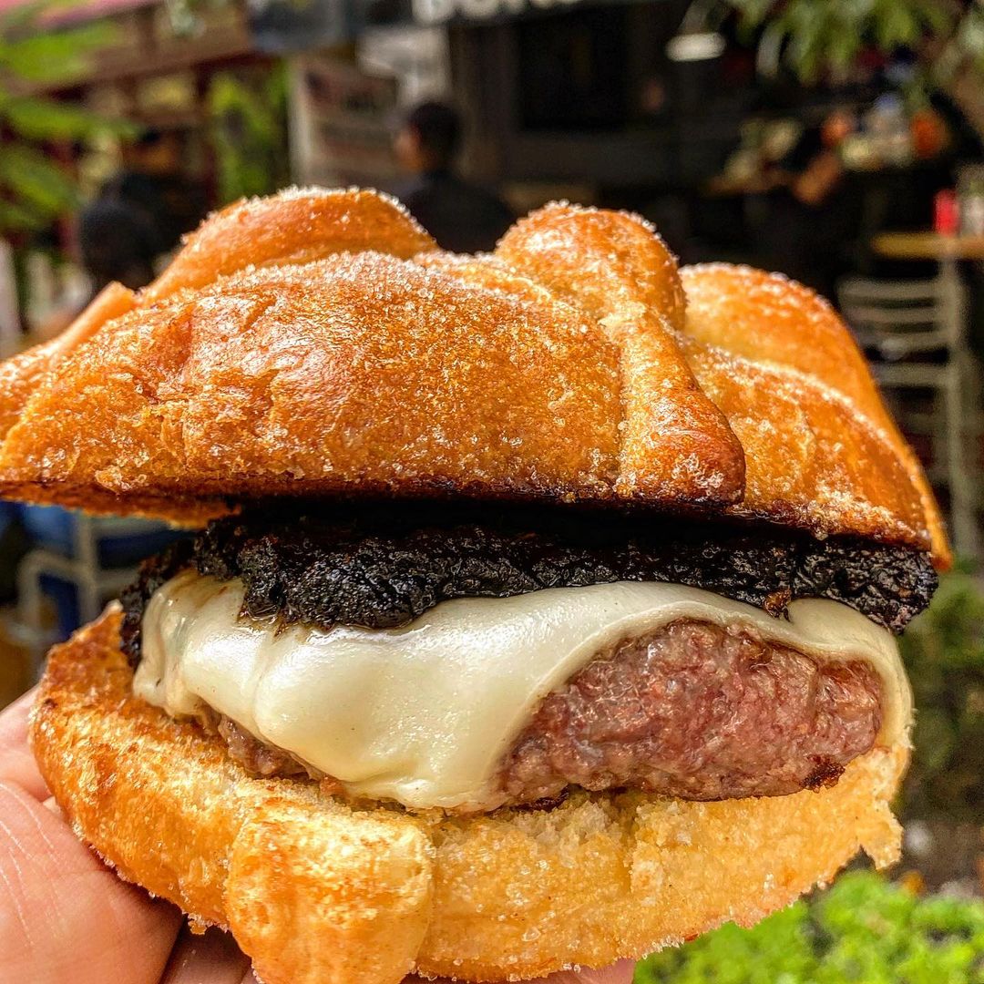 Su obra para este festival de pan de muertos es su ya tradicional Hamburguesa hecha con pan de muerto, si, con azúcar, con sus huesitos y todo lo que lleva un pan de muerto, sumamos los sabores de su carne que es una delicia, unas cebollitas caramelizada, queso suizo y al hacerla convivir con su mermelada de tocino que es una joya a base de jarabe de maple, bourbon y reducción de balsámico. Esta hamburguesa debería de existir todo el año, como el pan de muerto.