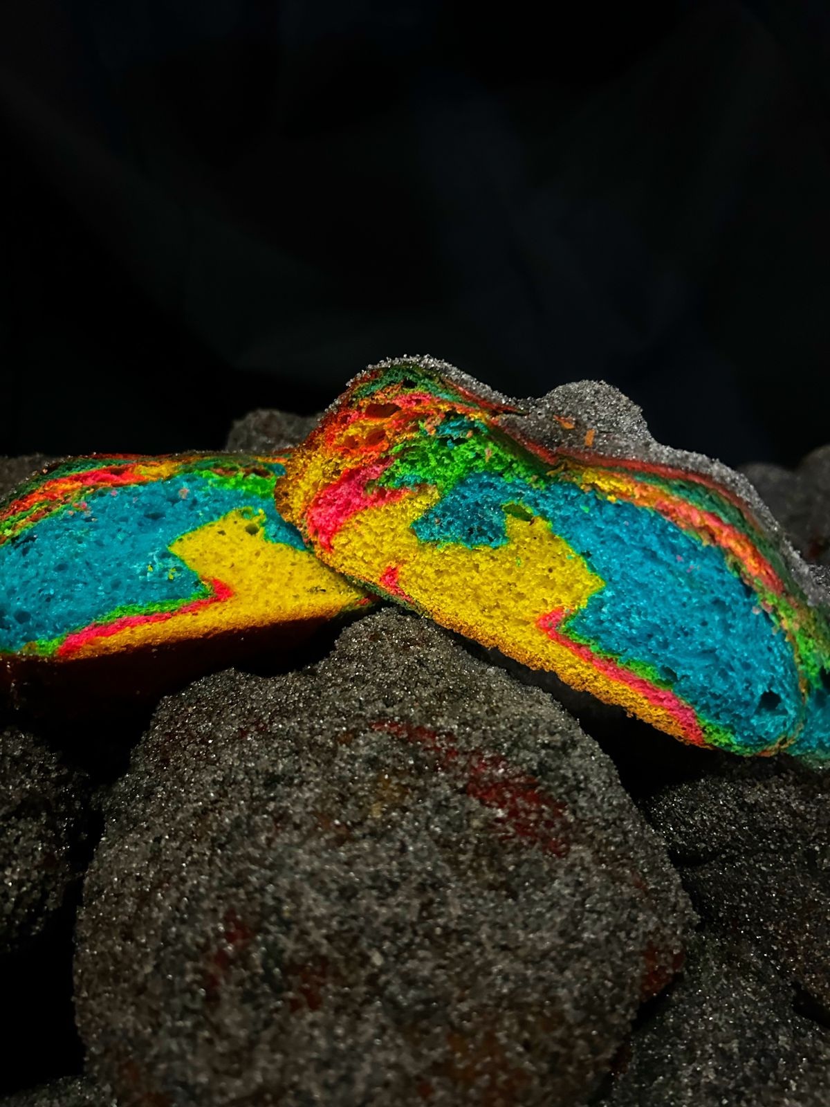 · Catrina: Pan de muerto Arcoíris relleno de una decadente ganache de chocolate, jamaica y guayaba