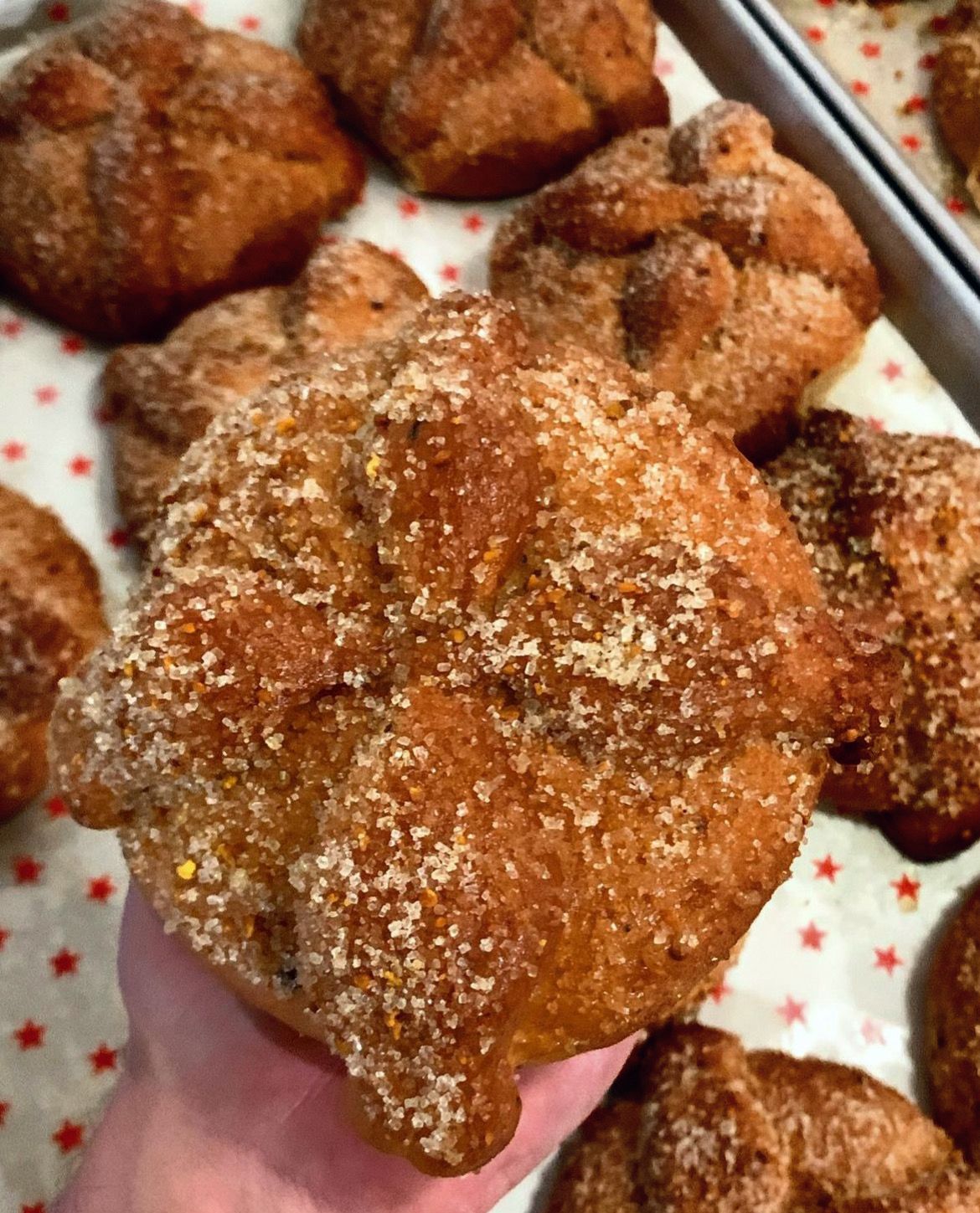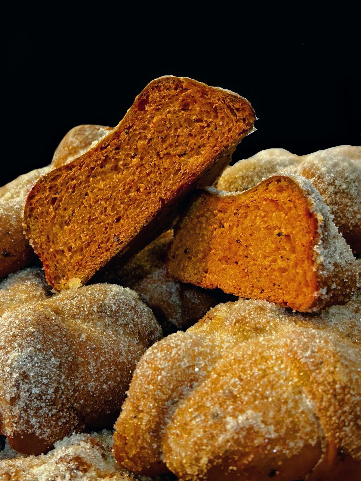 · Mictlan: Pan de muerto de masa madre, hojuelas de chile, miel de abeja, cacao fermentado y polen de abeja