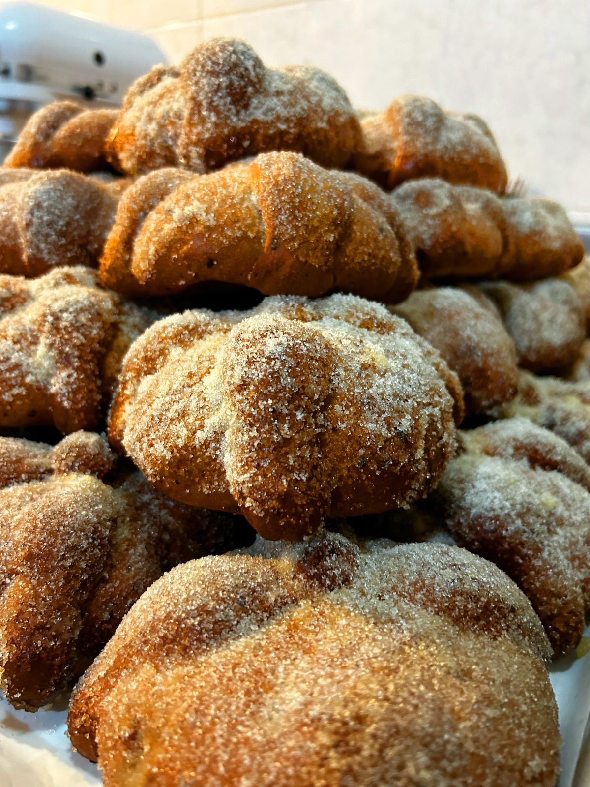 · Catrín Colorado: Pan de muerto arcoíris de masa madre, nuez, vainilla de Papantla cubierto de Totonoxtle
