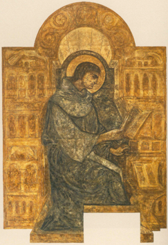 Fue la obra que más valoró en su carrera, tardó 4 años y fueron alrededor de 300 metros cuadrados de obra pictórica. A través de 6 paneles dedicados al santo agustino; en el primer panel coloca al santo en un pupitre medieval leyendo la Ética Aristóteles, en el segundo colocó la santo rezando en la iglesia de Monte Paolo en Italia, el tercer panel se representa la clásica iconografía de San Antonio cargando al niño Dios, el cuarto se encuentra escribiendo sus sermones, el quinto es realizando su obra más trascendental y, por último, el santo muerto con el personaje recostado citando EG, la firma de la autora.