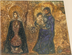 La obra fue realizada en la técnica de concreto teñido, al igual de la mayoría de sus trabajo previos. La pintó en el Estudiantado Mayor Josefino del Convento de los Padres Josefinos en C. Pensilvania 228, Nápoles, Benito Juárez, 03840. La artista representó a la Sagrada familia con tonos contrastantes, en líneas decorativas y tonalidades cromáticas contrastantes con el fondo cálido que eligió la artista. Cabe mencionar que se aprecian ciertos rasgos de su periodo indigenista en los rasgos físicos que representó en los personajes.