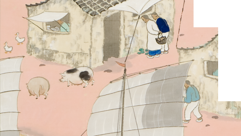 Una parte importante de la pintura de paisaje japonesa está anclada en la tradición china. A lo largo de la historia existen numerosos ejemplos plásticos de lugares reales e imaginarios de China recreados a partir del profundo conocimiento que los artistas japoneses tenían de los clásicos chinos. Entre los años 1633 y 1853, Japón implantó una política de aislamiento que restringía la salida del país a sus habitantes bajo pena de muerte. Fue, por lo tanto, antes del siglo XVII y sólo a partir de mediados del siglo XIX que los viajeros japoneses plasmaron los paisajes chinos que habían observado por sí mismos, como es el caso de pintores aquí que se incluyen en esta sección.